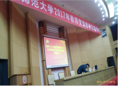 2017年12月17上午10:10-11:40,汪勇教授受贵州师范大学组织部邀请在田家炳书院三楼多功能厅给基层党支部书记100余人讲《高校意识形态工作》。