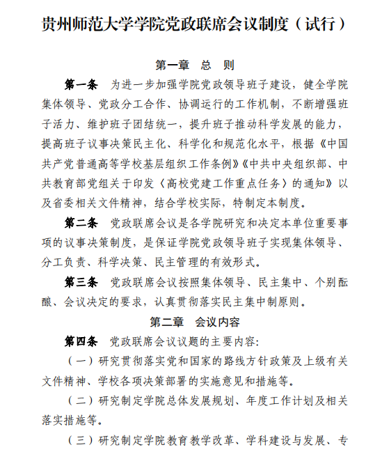 贵州师范大学学院党政联席会议制度(试行)