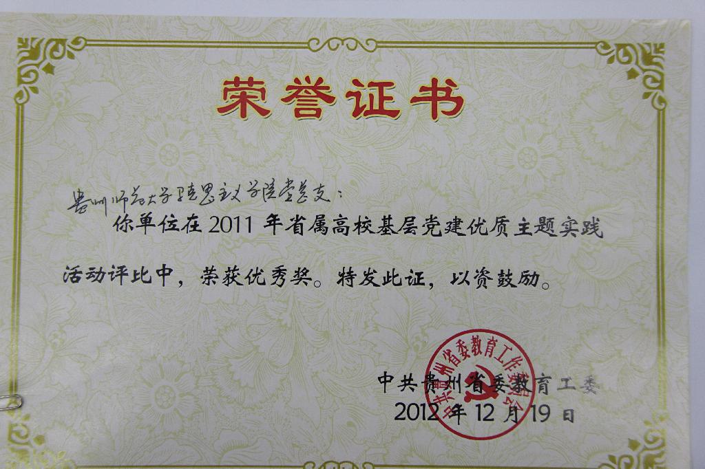 太阳成集团tyc151cc在贵州省高校基层党建优质主题实践活动评比中,荣获优秀奖。