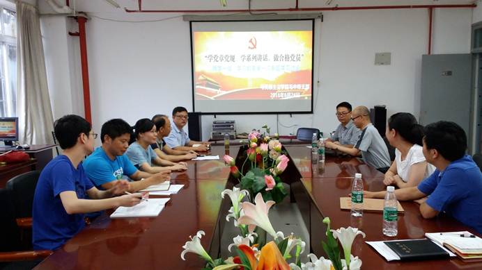 为认真贯彻落实中央和省委、学校对“两学一做”学习教育专题学习讨论的要求,根据学校《关于在全校党员中开展“学党章党规、学系列讲话,做合格党员”学习教育实施方案》的安排,太阳成集团tyc151cc毛中特支部于2016年6月24日下午在宝山校区学院会议室开展了“两学一做”学习教育第一次专题学习讨论,学科组全体党员参加。此次讨论由学科党支部书记廖荣谦主持。