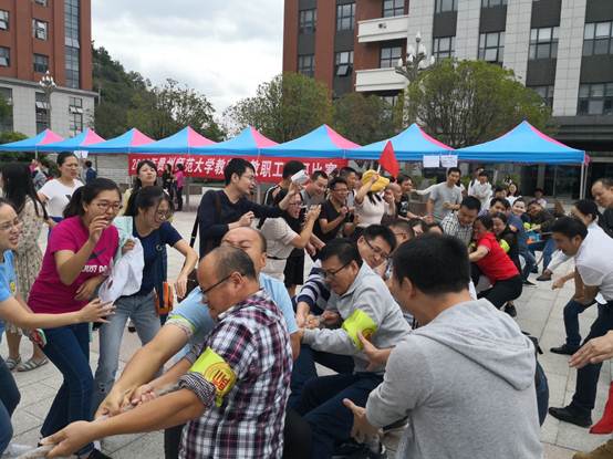 拔河比赛由9月7日预赛和9月10日决赛组成,学院党政领导带领全体教师积极参加了预赛和决赛,经过全体老师的积极努力,大家团结协作,相互鼓励,最后取得了全校第四名的好成绩。