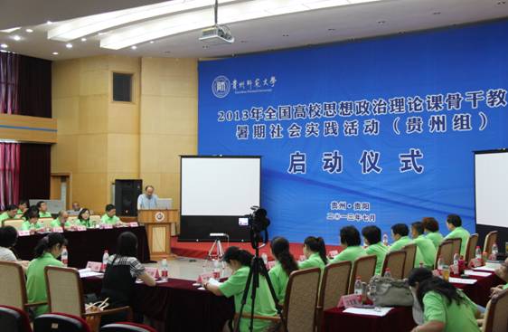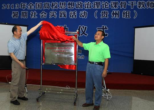 2013年7月11日上午,教育部全国高校思想政治理论课教师社会实践研修基地(贵州师范大学)揭牌暨2013年全国高校思想政治理论课骨干教师暑期社会实践活动(贵州组)启动仪式在贵州师范大学田家炳教育书院三楼多功能厅举行,参加仪式的有教育部社科司、中宣部理论局、省教育厅社政处、贵州师范大学等单位相关领导,以及参加2013年暑期社会实践活动(贵州组)的全体学员。