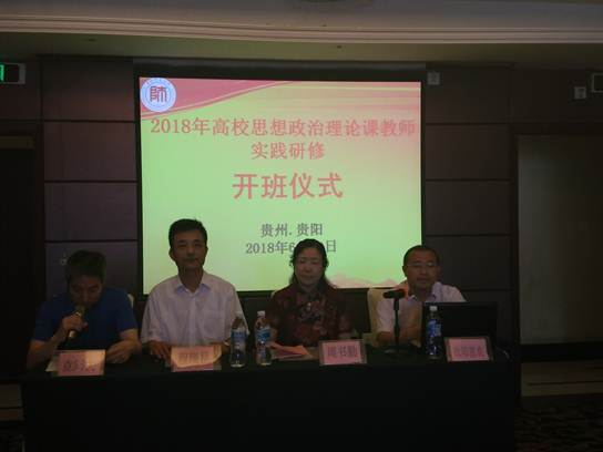 2018年6月10日上午,教育部“全国高校思想政治理论课教师实践研修基地(贵州师范大学)”2018年度暑期研修活动(第一期)在我院正式开班。参加本次研修活动的有来自安阳师范学院、大连医科大学、黑龙江科技大学等3所高校的23名思想政治理论课教师。我院院长欧阳恩良、安阳师范学院太阳成集团tyc151cc院长周书勤、大连医科大学太阳成集团tyc151cc研究生思政课教研室主任程现昆等在开班仪式上致辞和讲话。开班仪式由学院副院长兼党委副书记彭法主持。