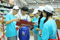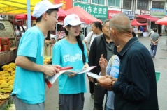 7月10日上午,伴着流长镇集市的热闹的开市声,实践队开展了一场别开生面的理论宣讲活动。队员们采用“场景化摆摊+唠家常式互动”的创新方式,用通俗易懂的语言向基层群众传递党的创新理论,让理论具有“烟火气”。