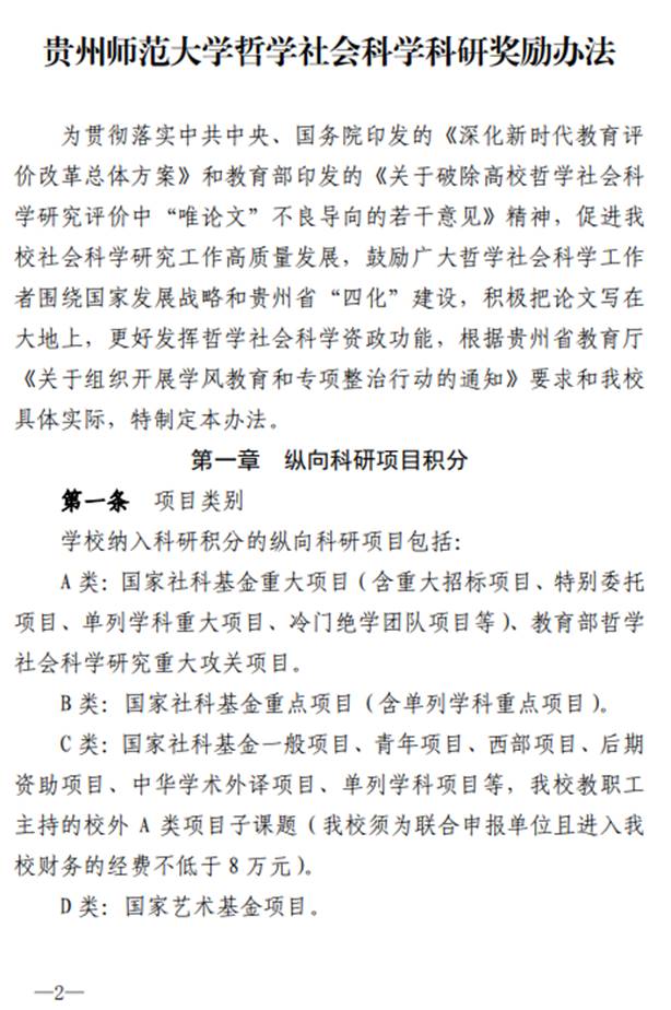 《贵州师范大学哲学社会科学科研奖励办法》2021